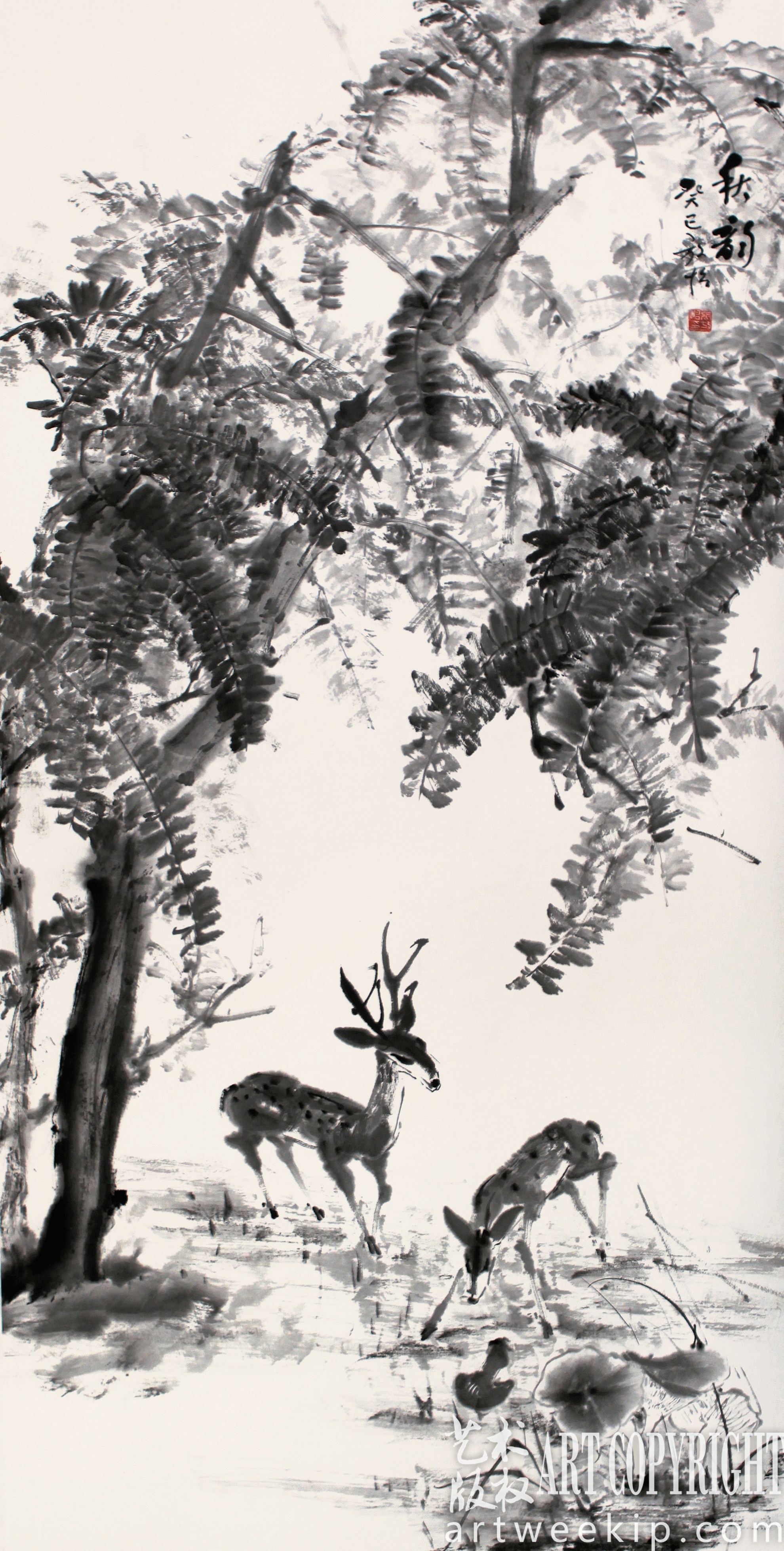但我的眼光并没有局限于此。中国画博大精深,不可能全部体现在一个人身上。虽然也有任伯年这样山水、人物、花鸟皆精的大师,但这样的人毕竟是少数。所以我觉得应该集中主要的精力、时间来学习、研究花鸟画。一个画家做这种选择,是经过了哲学的考虑的。画家如果没有哲学的思维,要想提高便非常难。重复画一样东西不难,但要创新、发展,没有哲学思维会很难。比如从构图上讲,浓淡、干湿、疏密、远近、黑白灰……这些对立统一关系都离不开哲学。浓淡、干湿在每一幅画里都应该出现,该疏的疏,该密的密,疏可跑马,密不透风……